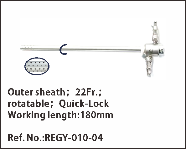 2. Outer sheath: 22FR outer diameter, 360° rotatable irrigation port, connected via an automatic locking system.